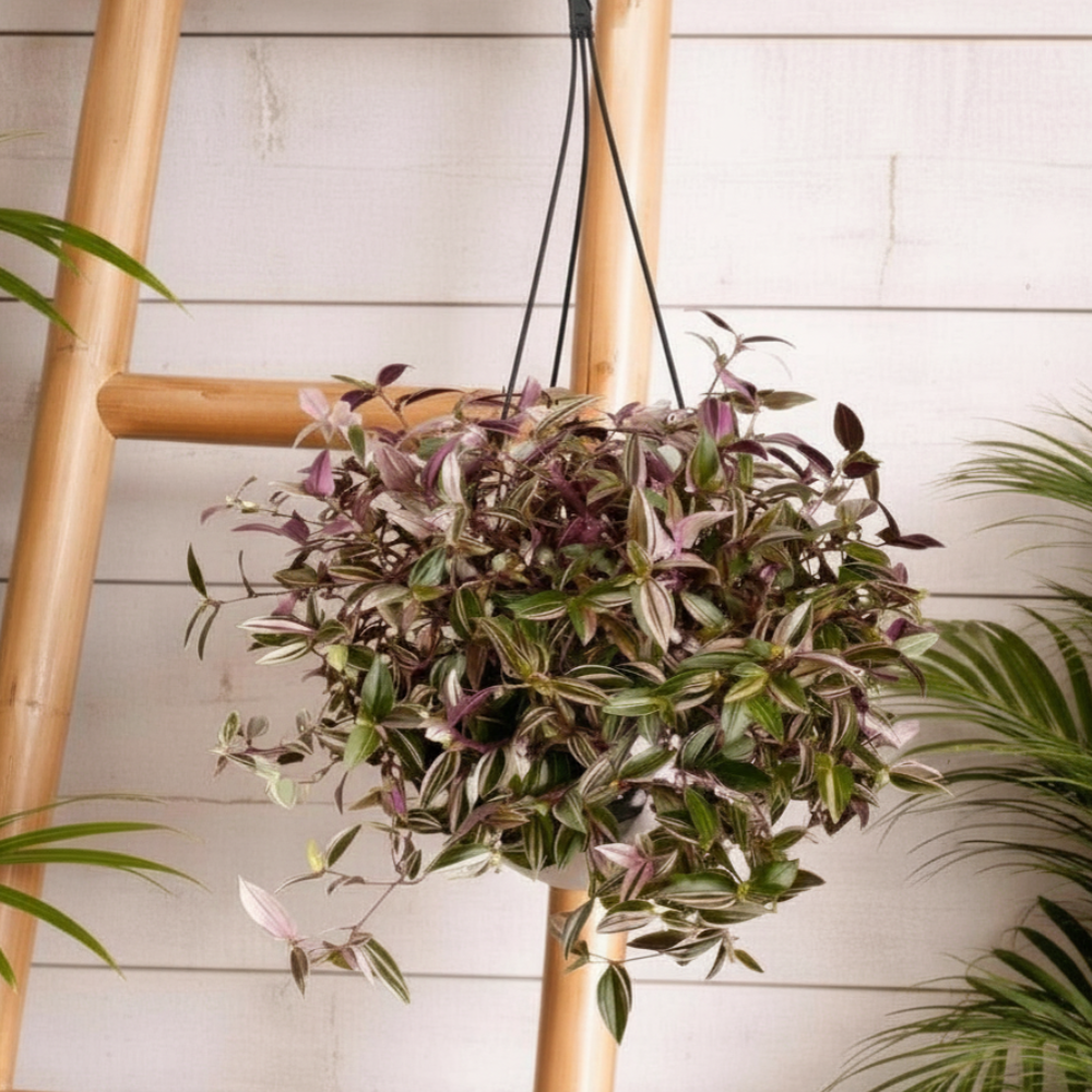 A soft tumble of colour and texture, our 17cm Tradescantia hanger is one of those effortlessly beautiful houseplants that instantly elevates a space. With its trailing vines and striking mix of green, cream and purple tones, it creates a relaxed, cascading look that feels both modern and a little bit wild.